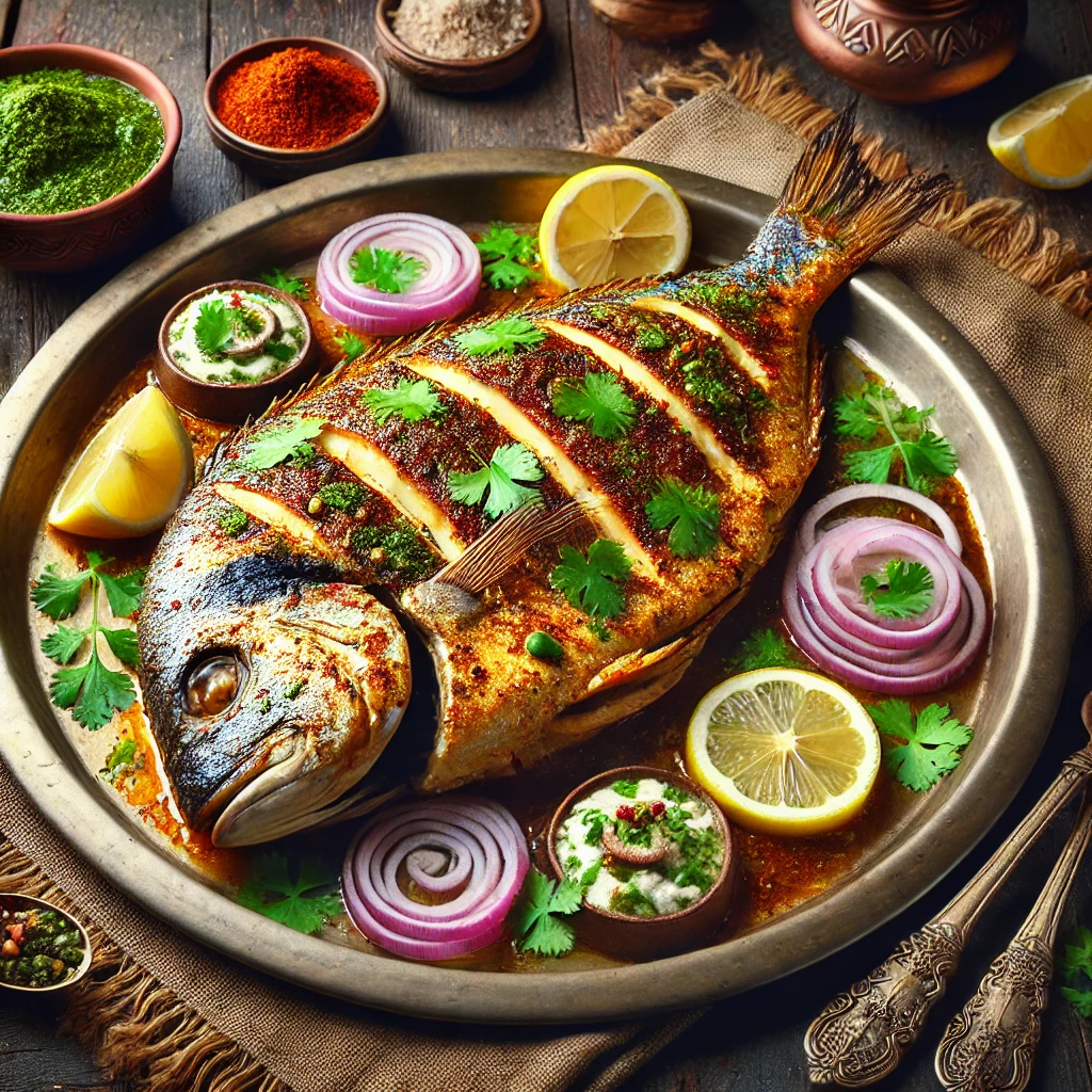 Fresh pomfret is marinated in a blend of aromatic spices and slow-cooked in a tandoor to perfection. The result is a smoky, flavorful dish with a tender, juicy texture in every bite.